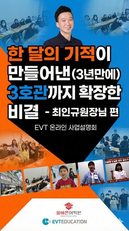 [온라인·무료] EVT|한 달의 기적이 만들어낸 (3년 만에) 3호관까지 확장한 비결 - 최인규 원장님(Roy Choi)