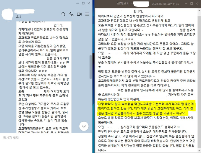 대치동 및 1,000명대 학원 4개의 진로진학컨설팅을 맡고 계신