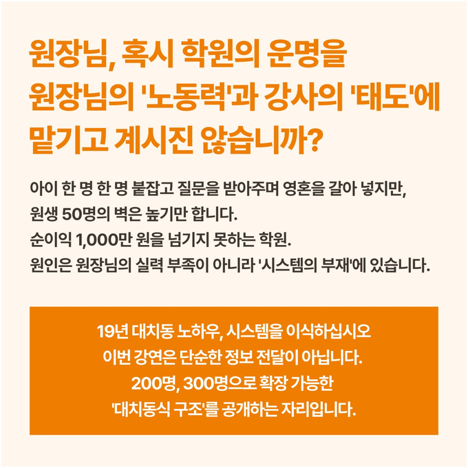 원장님, 혹시 학원의 운명을 원장님의 '노동력'과 강사의 '태도'에 맡기고 계시진 않습니까?