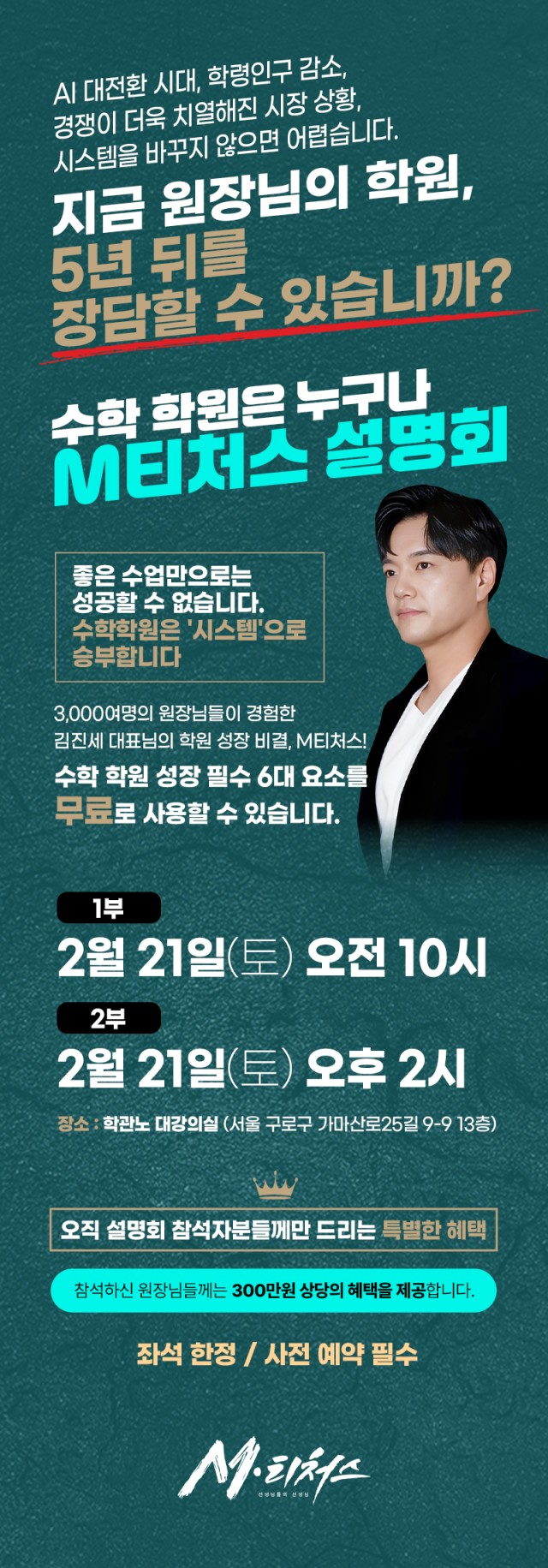[오프라인/무료]M티처스 설명회|지금 바꾸지 않으면 5년 뒤를 장담할 수 없습니다!