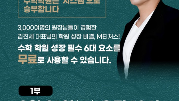 [온라인] [ 긴급/수학] 수학학원 생존 전략 Special Series 언제까지 영혼을 갈아 넣어 수업하실 건가요?-김성태 대표 (I.SAC 대표) ☞ 제목 : 언제까지 영혼을 갈아 넣어 수업하실 건가요? ☞ 주관 : 프리미엄 수학 브랜드 I.SAC ☞ 강사 : 김성태 대표 (I.SAC 대표) ☞ 시간 : 2.25(수)오전/ 밤 10:10~11:30 ☞ 진행 : 무료 / 줌 온라인 설명회 [설명회 신청하기] 신청시 휴대폰 번호를 정확히 입력해주세요! ※ 오전/밤 동일한 내용으로 진행됩니다. 가능한 시간에 택1 신청해주세요. ▪ 2.25(수)오전 10:10~11:30 → https://bit.ly/4qw93rN ▪ 2.25(수)밤 10:10~11:30 → https://bit.ly/4abU41n - 크롬브라우저 또는 모바일로 신청가능합니다. - 온라인 설명회 안내는 신청자에게 따로 문자 안내됩니다. ▪ 참가자 제외 1. 학원장이 아닌 업체 관계자 2. 타학원 커뮤니티 운영자 및 강의자 원장님, 혹시 학원의 운명을 원장님의 '노동력'과 강사의 '태도'에 맡기고 계시진 않습니까? 아이 한 명 한 명 붙잡고 질문을 받아주며 영혼을 갈아 넣