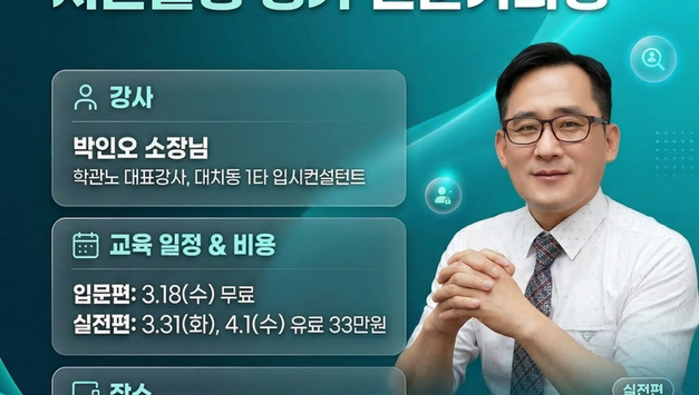 [온+오프라인/무료+실전과정] 초보원장에서 대박원장이 되기 위해 꼭 알아야 할 4가지 -김동욱 원장님(학관노 대표강사) 학원이 처음이라 어떻게 운영해야 할지 잘 모르시거나, 학원을 더욱 체계적으로 운영하고 싶으신 원장님들을 위해 이 과정을 준비했습니다. 수업은 열심히 하고 있는데 운영·관리·마케팅까지 혼자 감당하다 보니 “이게 맞나?” 고민해보신 적 있으시다면 이 강의를 꼭 들으셔야 합니다. [무료] ▪ 주관 : 학관노 ▪ 제목 : 초보원장에서 대박원장이 되기 위해 꼭 알아야 할 4가지 [무료] ▪ 강사 : 김동욱 원장님(학관노 대표강사) ▪ 일시 : 1.9(금) 오전 10:30 ~ 11:30 ▪ 진행 : 무료/ 온라인 줌 [신청하기] 신청시 휴대폰 번호를 정확히 입력해주세요! https://bit.ly/4qJqQfN - 크롬브라우저 또는 모바일로 신청가능합니다. - 온라인 설명회 안내는 신청자에게 따로 문자 안내됩니다. * 참가자 제외 1. 학원장이 아닌 업체 관계자 2. 타학원 커뮤니티 운영자 및 강의자 [유료 실전과정] ▪ 주관 : 학관노 ▪ 제목 : 초보원장에서 대박원장이 되기 위해 꼭 알아야 할 4가지 [실전과정] ▪ 강사 : 김동