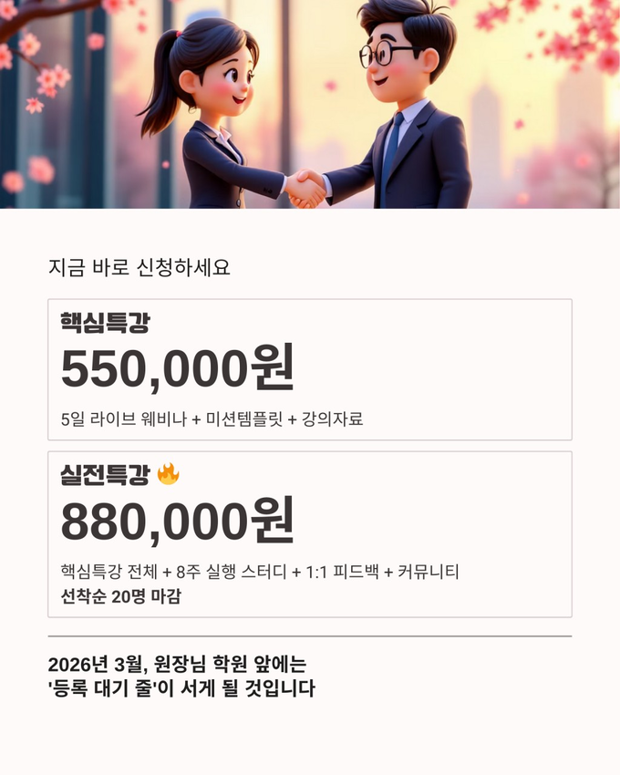 2026년 3월, 원장님 학원 앞에는 '등록 대기 줄'이 서게 될 것입니다.