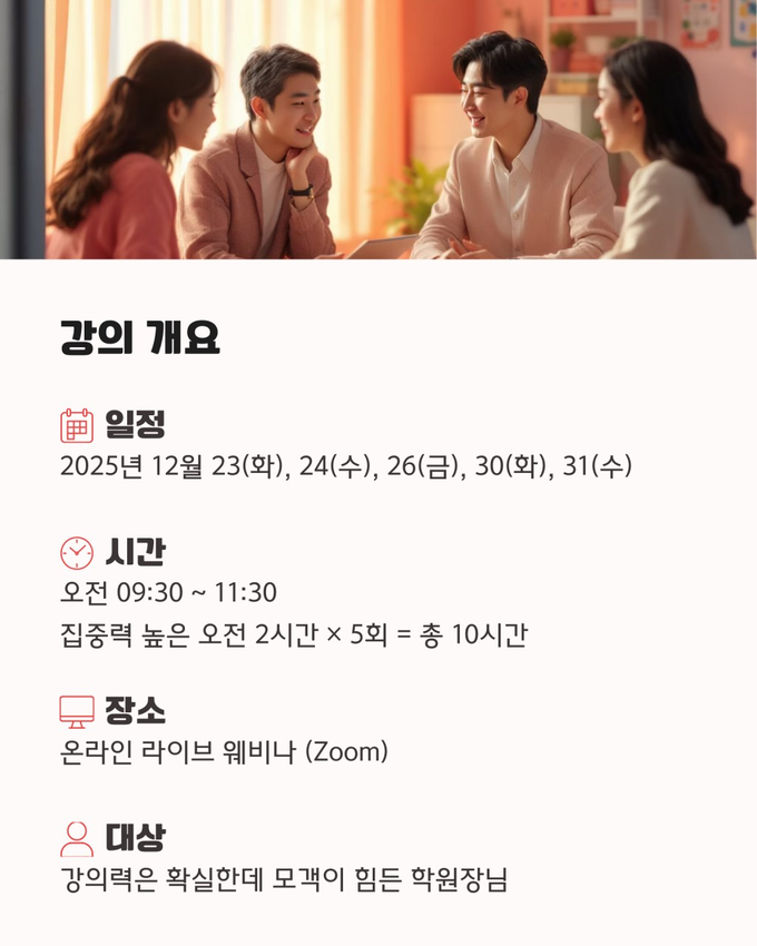 대상: 강의력은 확실한데 모객이 힘든 학원장