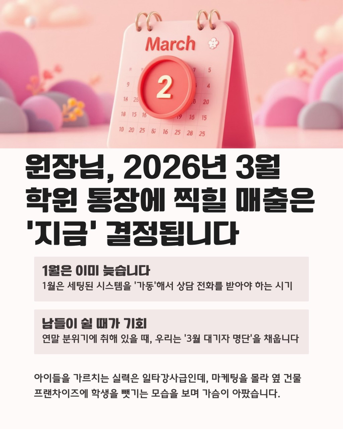 "원장님, 2026년 3월 학원 통장에 찍힐 매출은 '지금' 결정됩니다."