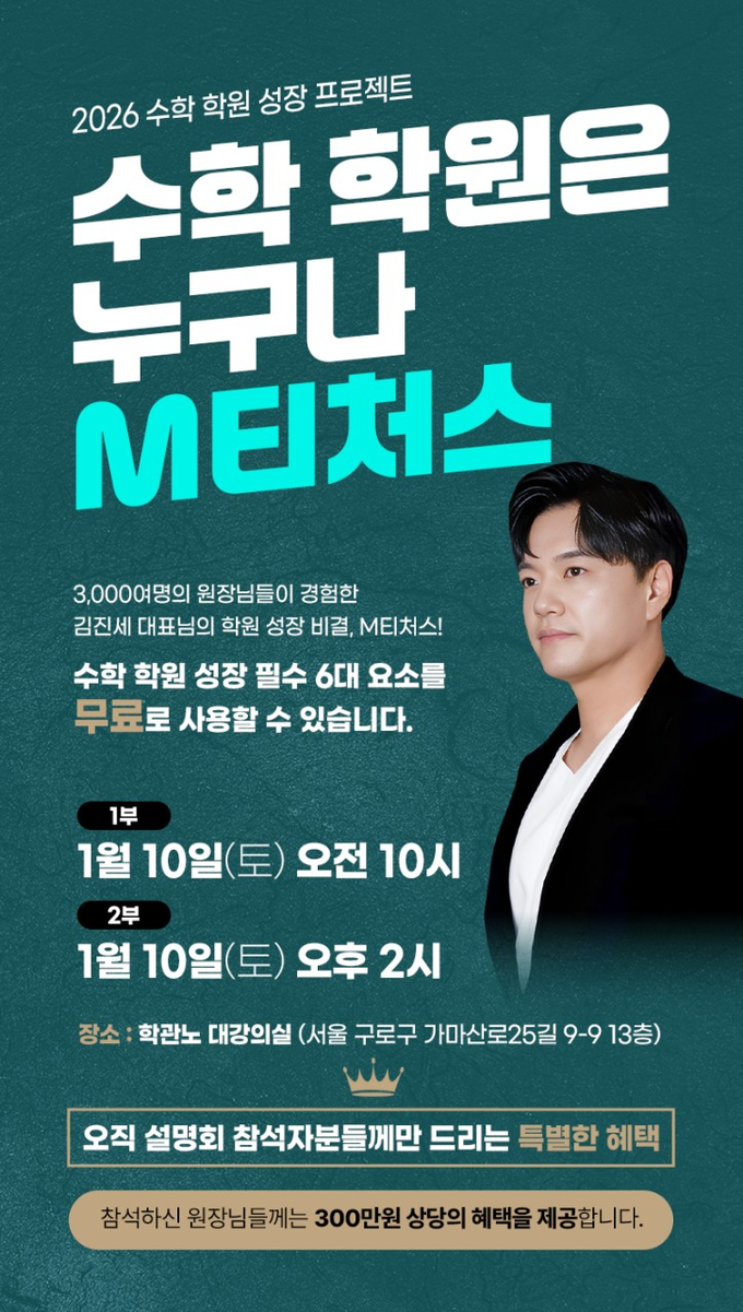 [무료/오프라인] 수학 학원은 누구나 M티처스 | 2026 수학 학원 성장 프로젝트- 김진세 대표님( M티처스)