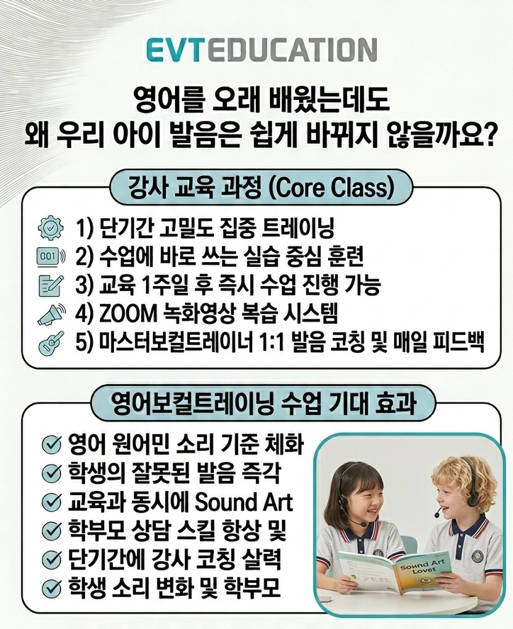 EVT는 단순히 발음을 가르치는 수업이 아니라, 학부모가 눈에 띄는 변화를 느끼게 하는 수업이라는 점을요.