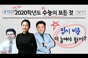 2020학년도 수능특집 에듀썰전입니다. 현재 교육의 방향은 학습자의 참여 중심의 교육으로 변하고 있습니다. 수능에서도 이런 변화에 맞춰 단순 지식의 암기로 풀 수 있는 문제가 아닌 지식의 응용, 활용 등을 요구하는 다양한 유형의 문제가 출제되고 있지만 아직은 문제를 푸는 요령이 적지 않게 작용하는 시험이라는 점에서 '현재 교육의 흐름에 맞는 평가 방식인가' 라는 의문이 제기되고 있습니다. 이번 에듀썰전에서는 최근 입시 공정성을 위한 방안으로 정시 비중 상향이 발표된 가운데 정시의 비중을 더 높여야 되는지, 아니면 낮추거나 유지해야 되는지 이야기를 나눠봤습니다.