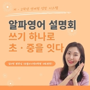 [무료] 쓰기 하나로 초·중을 잇다|저·고학년 연계형 성장 시스템 알파영어 설명회-김지영원장님(쏘윌아이영어학원 대표원장) 제가 운영하는 쏘윌아이 학원은 하루 4시간 수업만으로도 130명 규모로 성장, 대형으로 빠지던 고학년의 역유입, 중등 내신 평균96, “쓰기 때문에 다니는 학원”이라는 학부모 신뢰를 얻었습니다. * 주관 : 알파영어, 학관노 * 제목 : 쓰기 하나로 초·중을 잇다 (저·고학년 연계형 성장 시스템 알파영어 설명회) * 강사 : 김지영원장님(쏘윌아이영어학원 대표원장) * 시간 : 11.20(목) 오전/밤 10:10~11:10 * 진행 : 무료 / 온라인 줌 설명회 [신청하기] * 시간 : 11.20(목) 오전 10:10~11:10 * 신청하기 : https://bit.ly/4hKtApR * 시간 : 11.20(목) 밤 10:10~11:10 * 신청하기 : https://bit.ly/4hKJksR * 주관 : 알파영어, 학관노 * 제목 : 쓰기 하나로 초·중을 잇다 (저·고학년 연계형 성장 시스템 알파영어 설명회) * 강사 : 김지영원장님(쏘윌아이영어학원 대표원장) * 시간 : 11.20(목) 오전/밤 10:10~11:10 * 진행 :