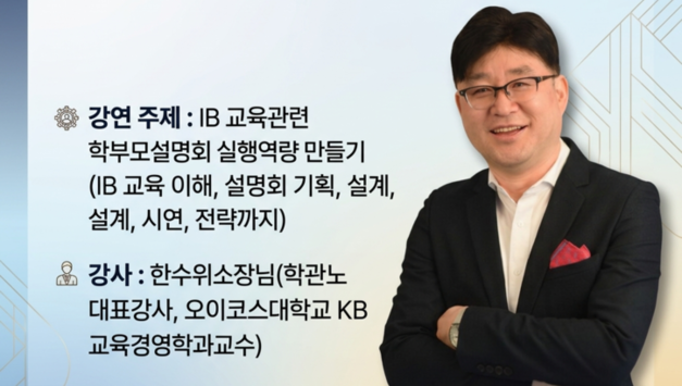 [무료] 탐구보고서, 학원 수업으로 어떻게 연결할 것인가? - 임정빈 대표님 [교육안내] - 제목 : 탐구보고서, 학원 수업으로 어떻게 연결할 것인가? - 강사 : 임정빈 - 날짜 : 2. 27(금) 오전 10시~12시 - 대상 : 학원장 - 교육비 : 무료 - 줌 URL : https://bit.ly/4cnwoIy - 교육 들으러 가기: https://bit.ly/4kxDAnO ※ 교육 안내 및 자료제공은 오픈채팅방에서 안내할예정입니다! * 참가자 제외 1. 학원장이 아닌 업체 관계자 2. 타학원 커뮤니티 운영자 및 강의자 [목차] 탐구보고서, 학원 수업으로 어떻게 연결할 것인가? - 수행평가, 올해는 줄어들까? - 학생부를 바라보는 대학의 관점 변화 - '공교육 혁신 보고서'에 담긴 교육의 변화 - 스토리를 가진 자만이 살아 남는 시대! - 학생들은 어디에서 '탐구방법'을 배우고 있을까? - 여러분은 '탐구력'을 가르칠 준비가 되셨습니까? [성공사례] 탐구 수업 하나로 단과 학원이 종합 학원으로 확장된 사례 "제주도 특성상 국제학교 아이들도 제법있어서 이 학생들을 중심으로 탐구보고서 수업을 진행하고 있었습니다. 수업 준비가 다소 버거워