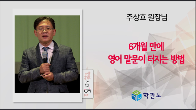 박종훈 원장님의 인생에 있어서소중한 강연으로 기억되기를 희망합니다-학관노- * 주관 : 학관노* 제목 : 영어식 사고방식 스피킹 리딩 라이팅으로 독보적인 학원만들기* 강사 : 박종훈 원장님* 시간 : 2017.9.26* 장소 : 서울 구로구 구로동 102 구로구민회관 1층 대강당* 형식 : 15분 강연