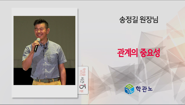 이동근 원장님의 인생에 있어서 소중한 강연으로 기억되기를 희망합니다 -학관노- * 주관 : 학관노 * 제목 : 완벽한 원장은 실패한다 * 강사 : 이동근 원장님 * 시간 : 2017.5.11 * 장소 : 서울 구로구 구로동 102 구로구민회관 1층 대강당 * 형식 : 15분 강연